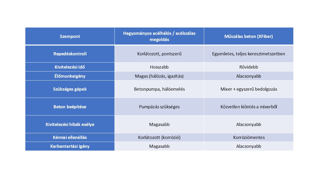 acélszál/acélháló erősítés kiváltása megfelelő tervezés mellett