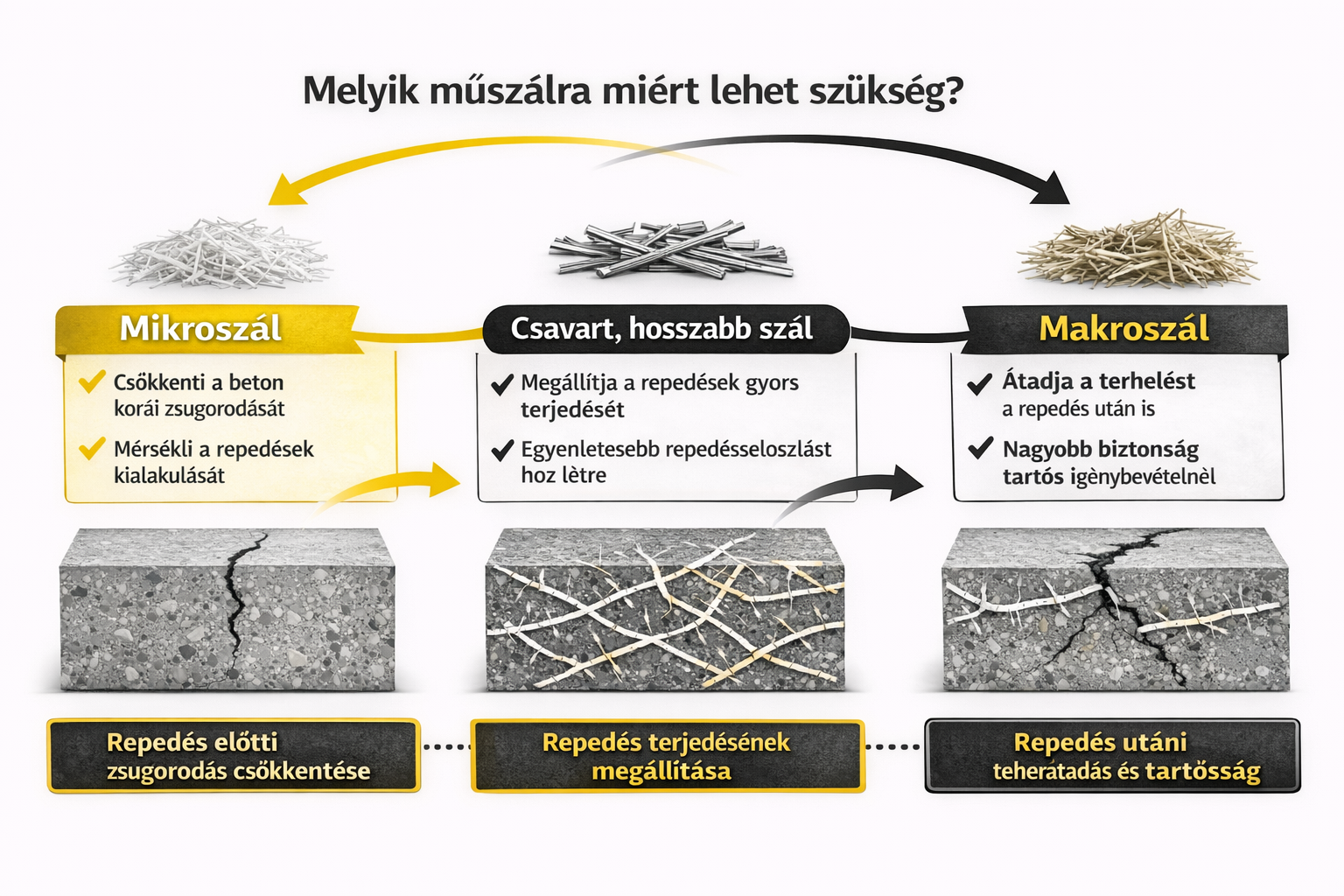 Miért használunk makroszálakat és hosszabb, csavart szálakat? Makroszálak – amikor a repedés utáni viselkedés számít