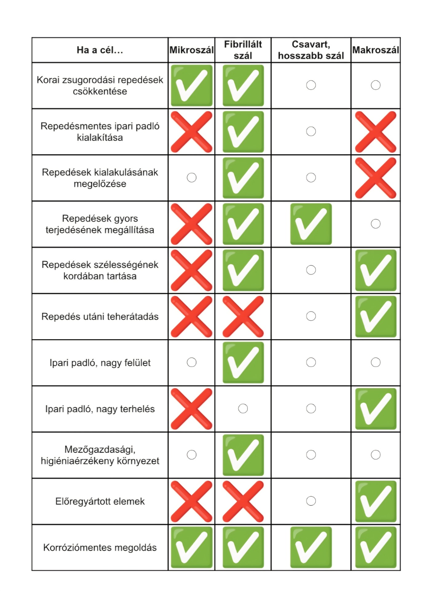 fibrillált szál → repedésmentességre optimalizált padlókhoz